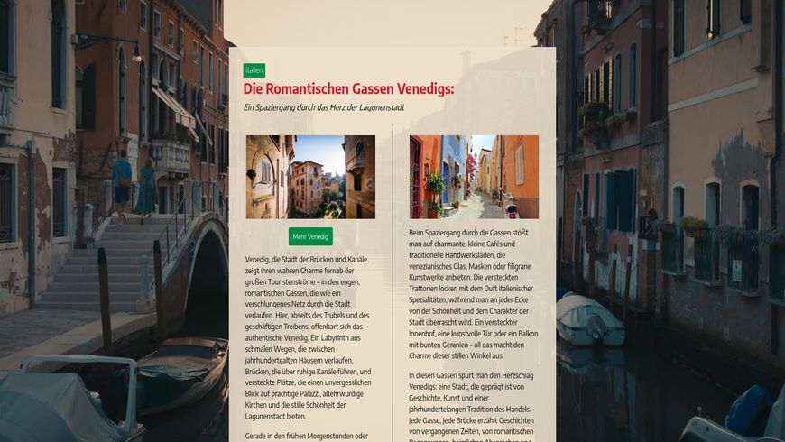 Venedig verzaubert mit romantischen Gondelfahrten durch seine malerischen Kanäle.
