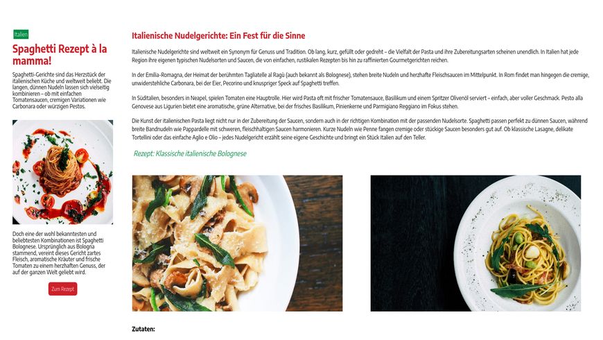 <p><span style="font-size: 16px; font-family: q4a8vLYMGXDgCFk4f;">Spaghetti-Gerichte sind das Herzstück der italienischen Küche und weltweit beliebt. Die langen, dünnen Nudeln lassen sich vielseitig kombinieren – ob mit einfachen Tomatensaucen, cremigen Variationen wie Carbonara oder würzigen Pestos.</span></p><p><span style="font-size: 16px; font-family: q4a8vLYMGXDgCFk4f;"><span style="font-size: 16px; font-family: q4a8vLYMGXDgCFk4f;"><img src="https://space.novamag.de/teams/SzbbGRHujJkkqNwDb/AJmHvKgusTb2A6aFh-original.jpg" data-expand="false" data-source="AJmHvKgusTb2A6aFh" data-original="AJmHvKgusTb2A6aFh" data-alt="mgg-vitchakorn-PLyJqEJVre0-unsplash" data-src="https://space.novamag.de/teams/SzbbGRHujJkkqNwDb/AJmHvKgusTb2A6aFh-original.jpg" style="width: 100%;" class="fr-fic fr-dib"></span></span><span style="font-size: 16px; font-family: q4a8vLYMGXDgCFk4f;"><span style="font-size: 16px; font-family: q4a8vLYMGXDgCFk4f;">Doch eine der wohl bekanntesten und beliebtesten Kombinationen ist Spaghetti Bolognese. Ursprünglich aus Bologna stammend, vereint dieses Gericht zartes Fleisch, aromatische Kräuter und frische Tomaten zu einem herzhaften Genuss, der auf der ganzen Welt geliebt wird.</span></span></p><p style="text-align: center;"><span style="font-size: 16px; font-family: q4a8vLYMGXDgCFk4f;"><span style="font-size: 16px; font-family: q4a8vLYMGXDgCFk4f;"><button class="fr-nova-button" contenteditable="false" data-background-color="rgb(205, 33, 42)" data-color="rgb(255, 255, 255)" data-hover-style="dim" data-href="novamag.de" data-quick-style="custom" data-reactroot="" data-target="_blank" style="background-color:rgb(205, 33, 42);border-color:rgb(255, 255, 255);border-radius:8px;border-style:solid;border-width:1px;box-shadow:none;color:rgb(255, 255, 255);font-family:'86M6hRaNdH8EEqYdd';font-size:14px;font-weight:400;line-height:normal;overflow:visible;padding:10px;transition:0.2s ease-in-out;" type="button">Zum Rezept</button></span></span></p>